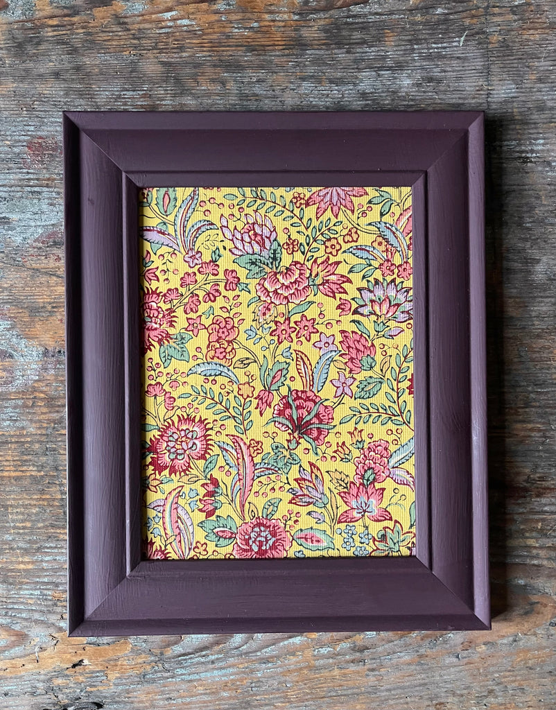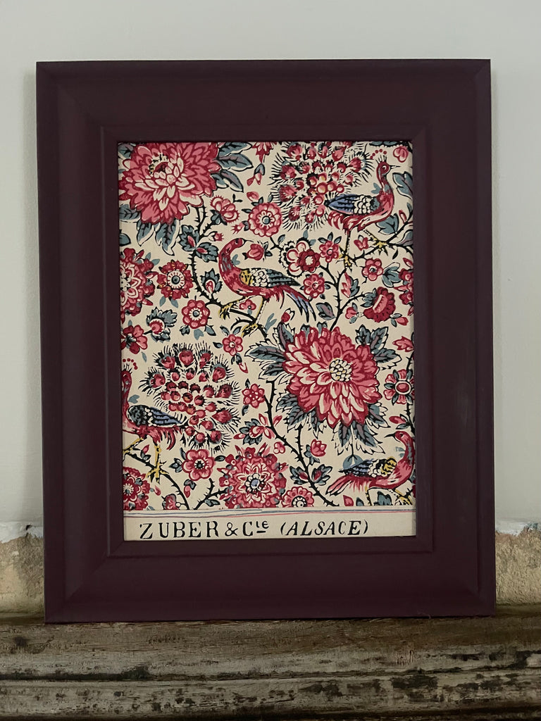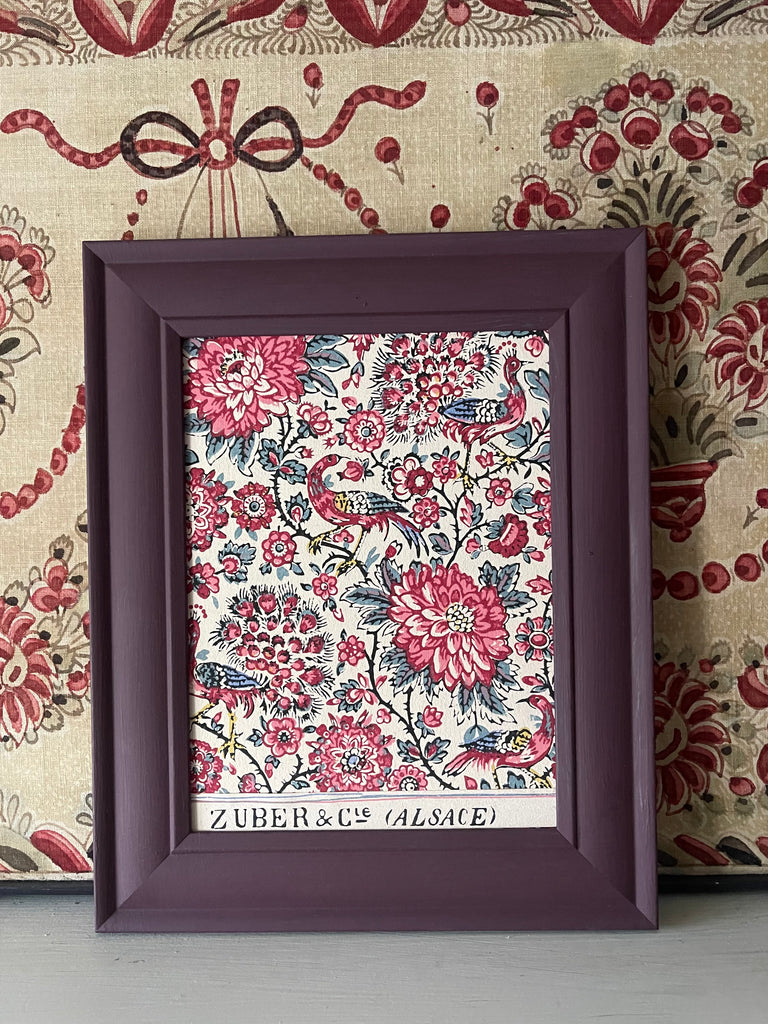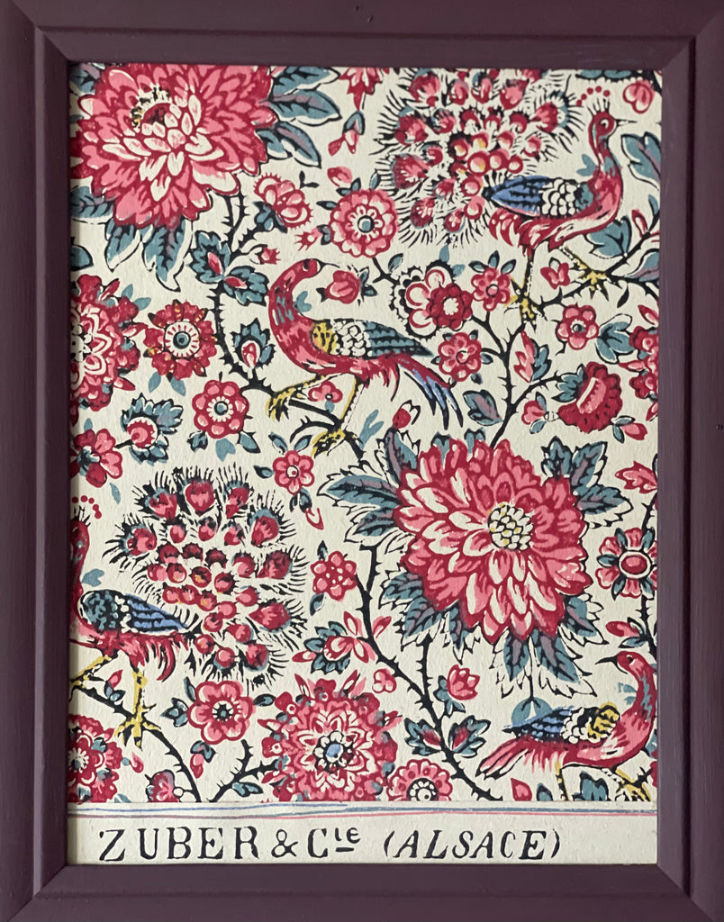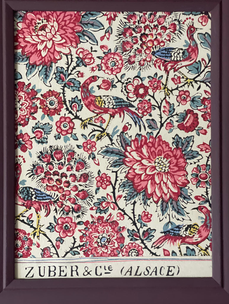 Antique Framed Block Print Hand Painted Wallpaper Samples: C19th Alsace, France