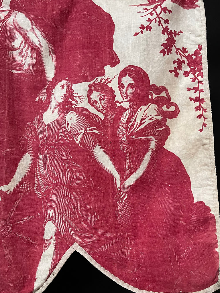 Antique Toile de Nantes ‘Chariot of Dawn’ Pelmet: C18th France
