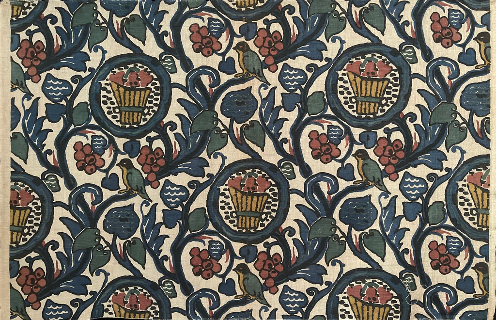 Dating from the 1920s Art Deco era, a printed textile by Paul Dumas.