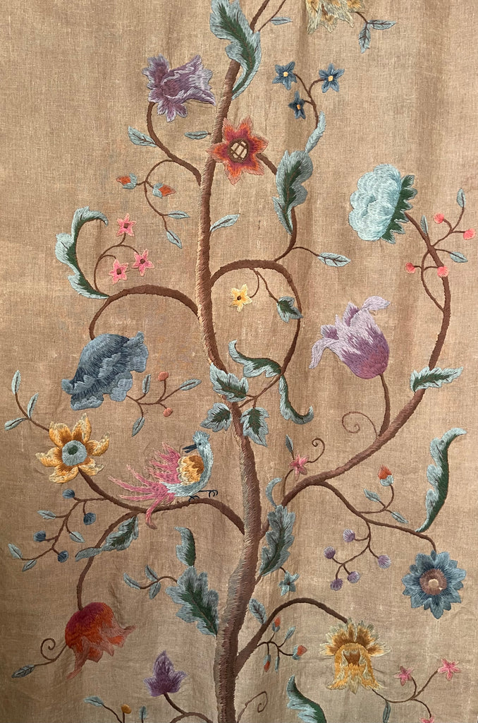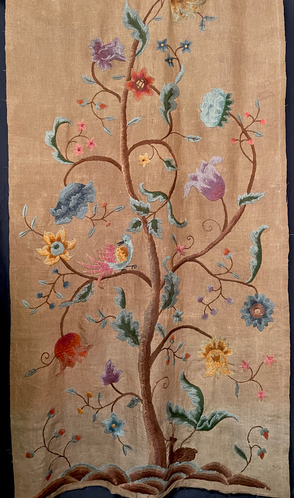 A superb Jacobean revival Crewelwork embroidered Tree of Life wall or bedhanging dating from around 1900, Britain.