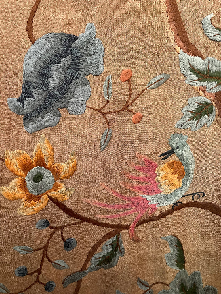 Entirely embroidered by hand in soft coloured wools with some extraordinary details.