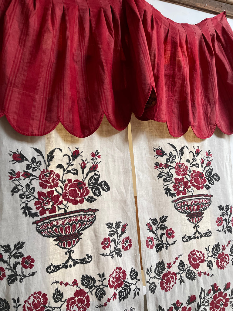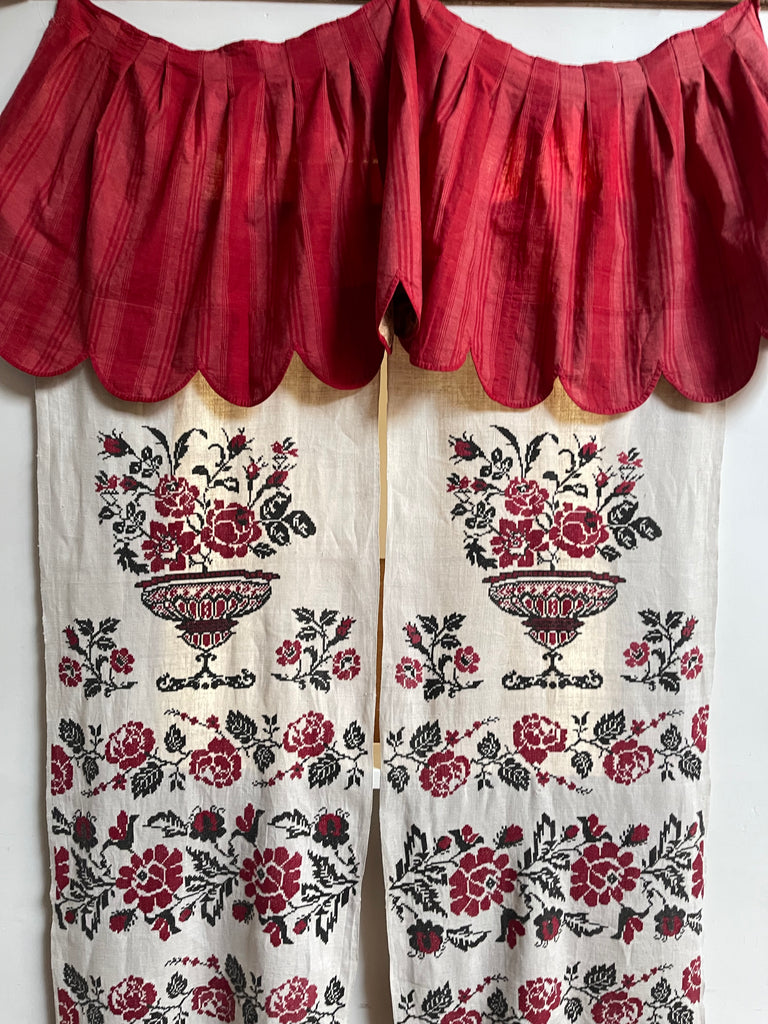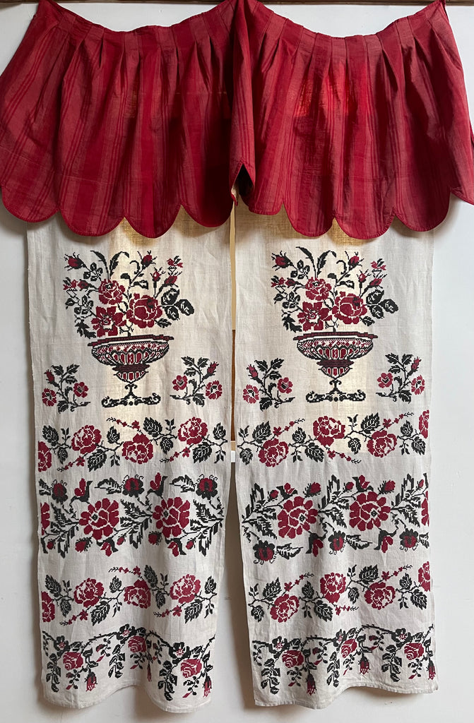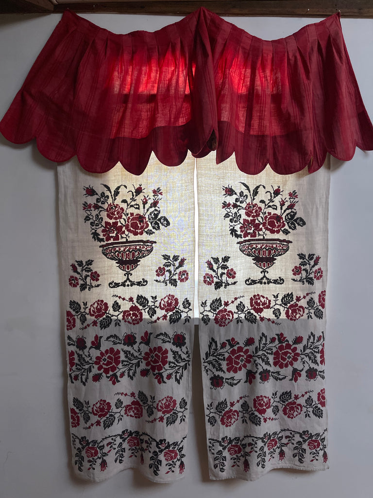 We have photographed the pelmet with a pair of traditional hand embroidered panels from Ukraine.