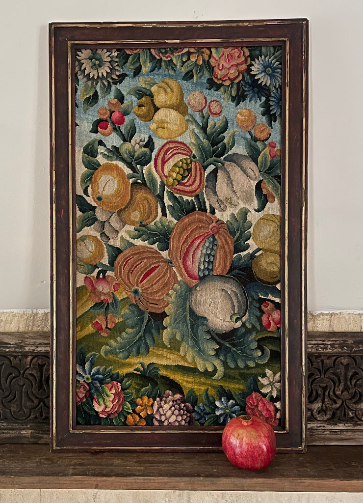 Embroidered Needlepoint Still Life with Pomegranates : C18th N. Europe, France or England