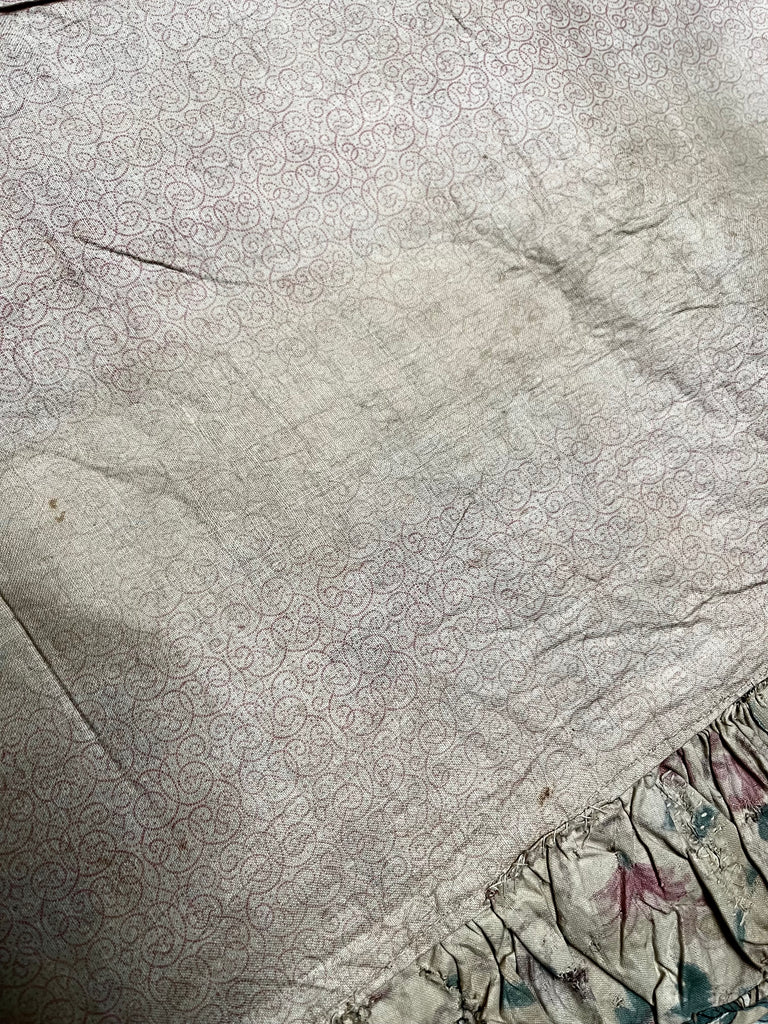 Probably once part of some bedhangings it has been fully lined in another glazed chintz and has a frill running down one side.
