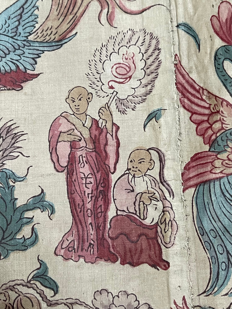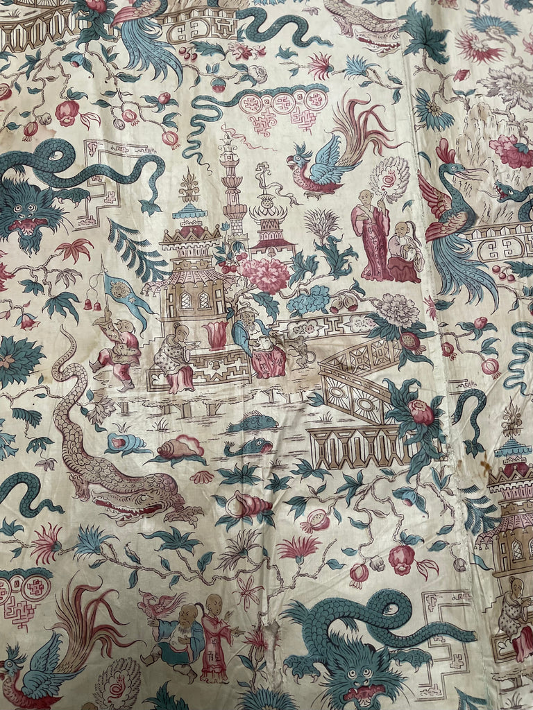 Panel of Georgian Glazed Chintz with Dragons and Exotic Creatures: C1800 England