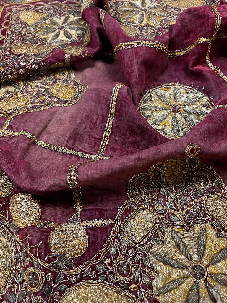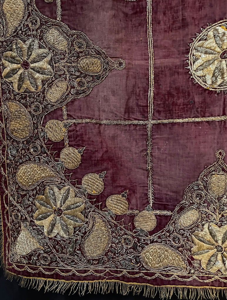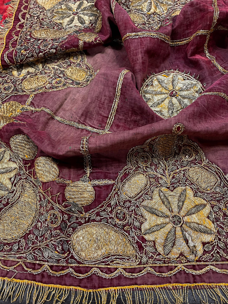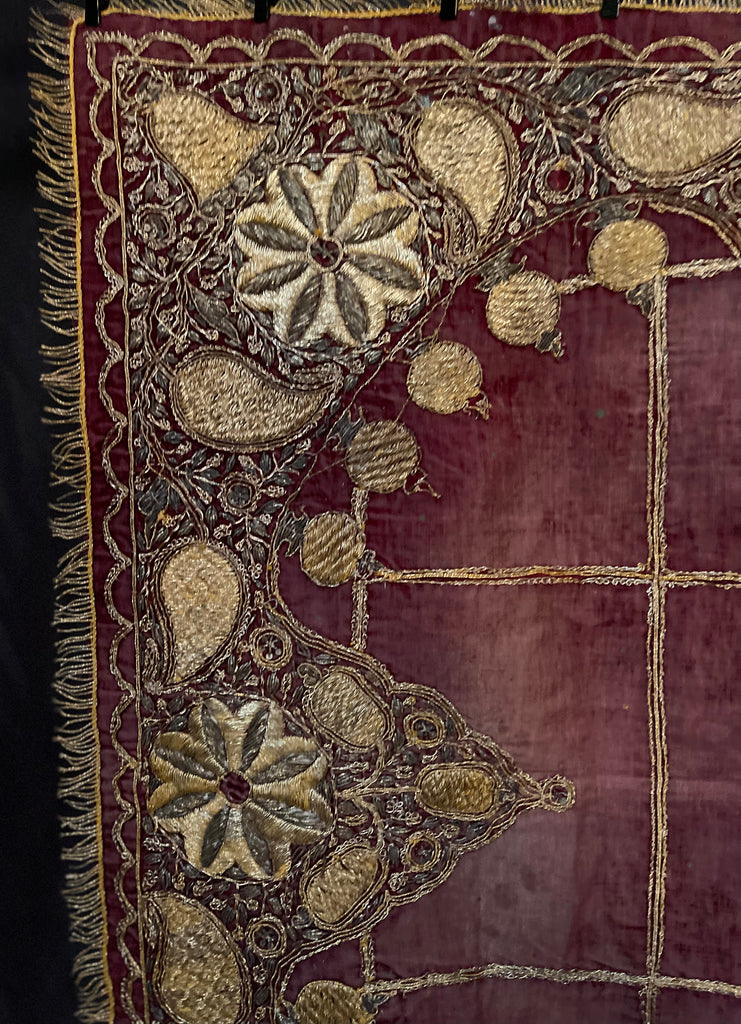 Antique Gold Gilt Thread Embroidered Silk Velvet Cover : C19th India