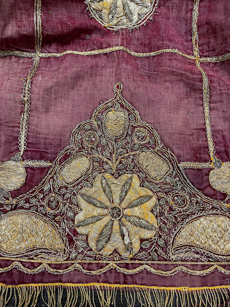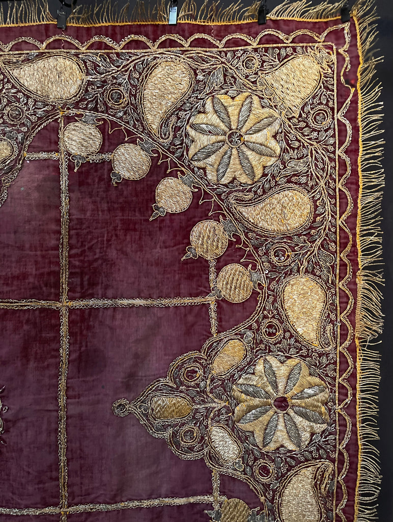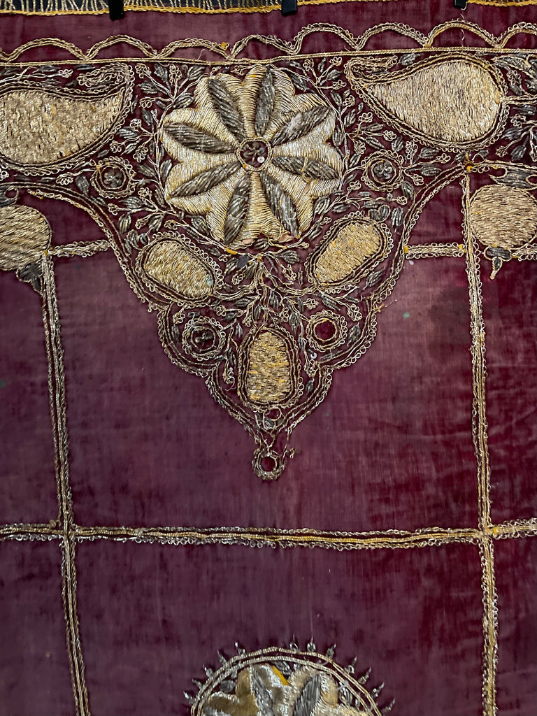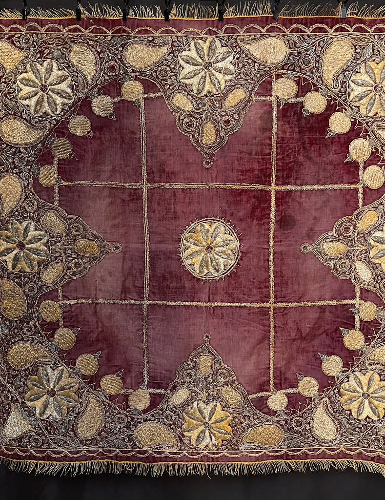 A wonderful antique traditional Ottoman silk velvet cover or hanging with gilt thread embroidery.