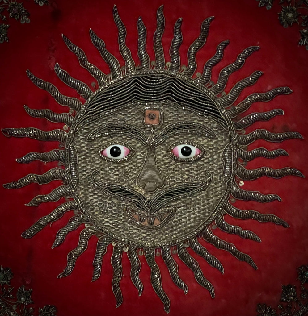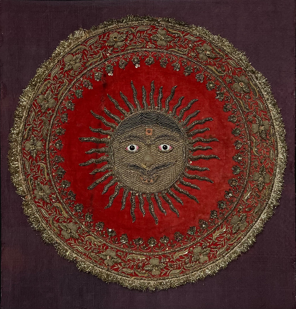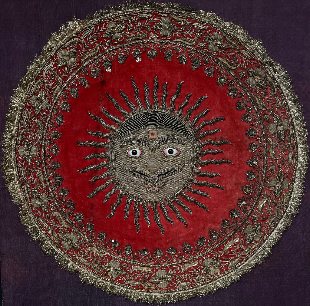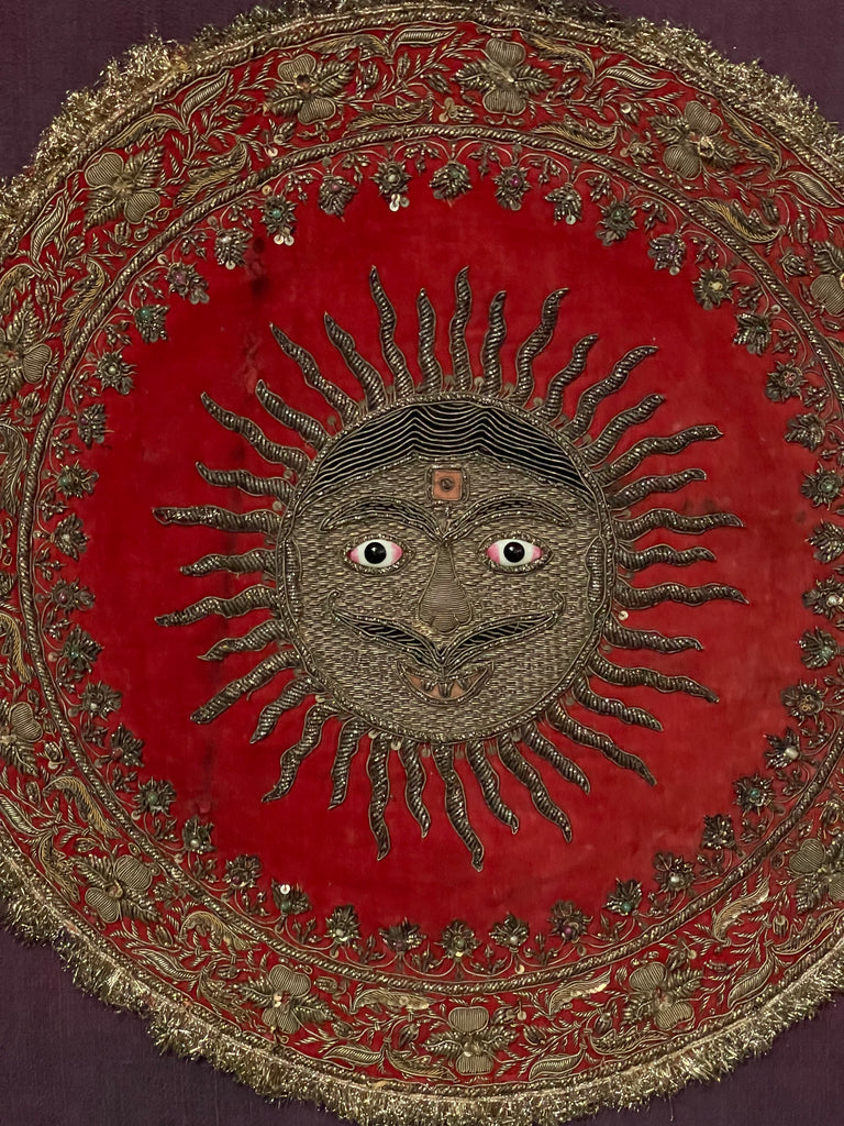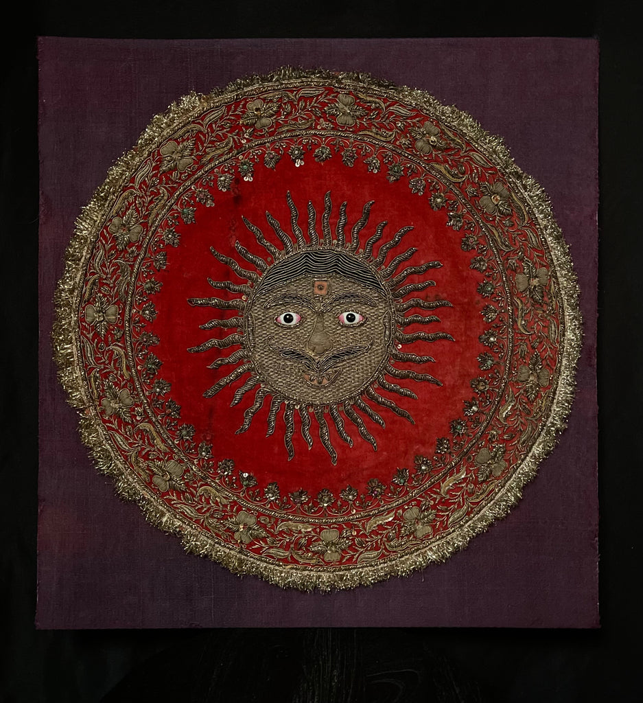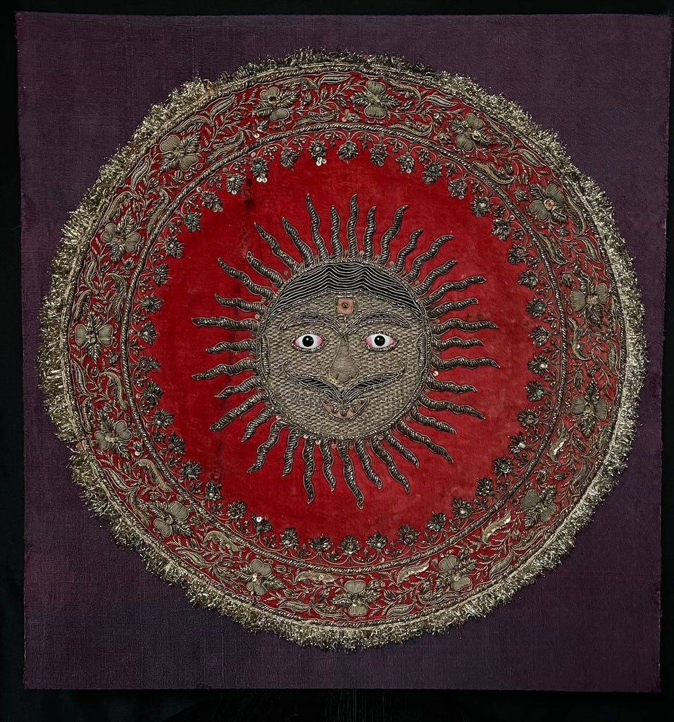 Antique Zardozi Embroidered Sun God on Velvet with Semi Precious Stones: C19th India