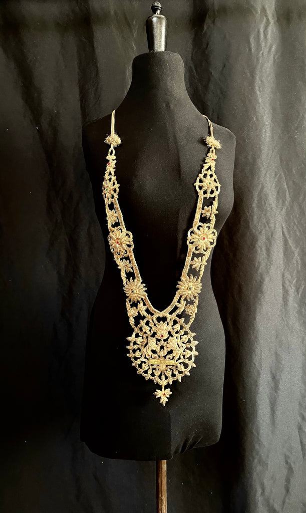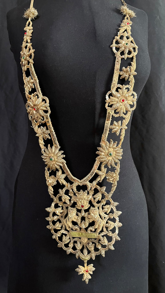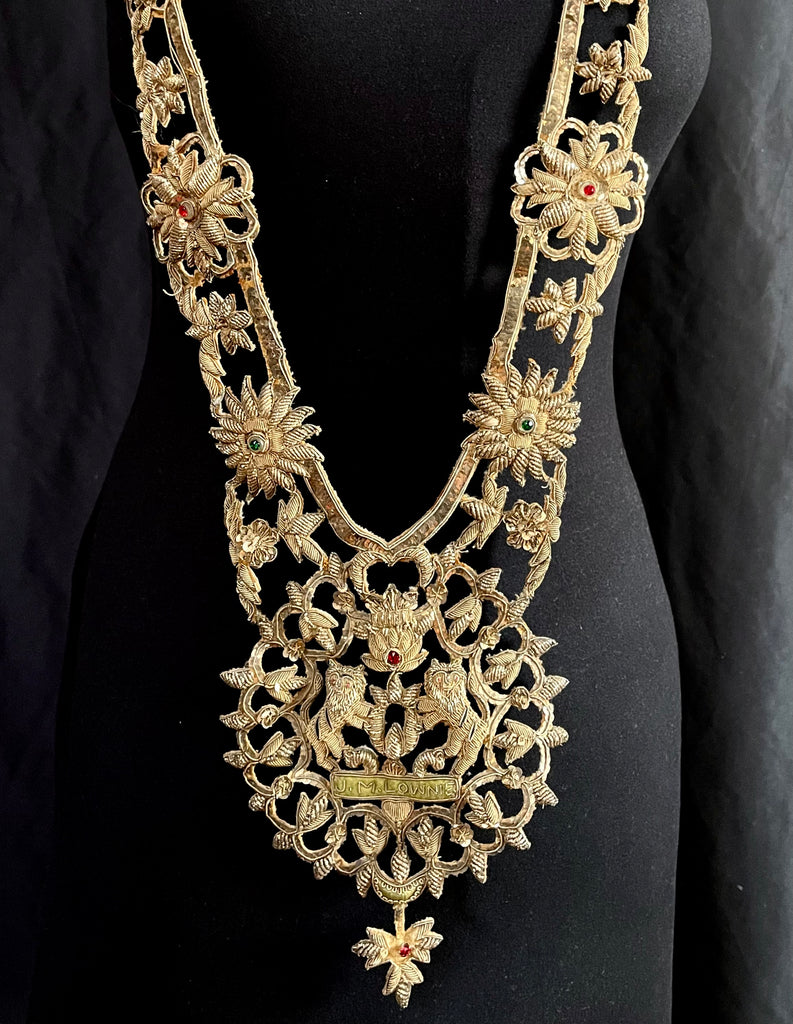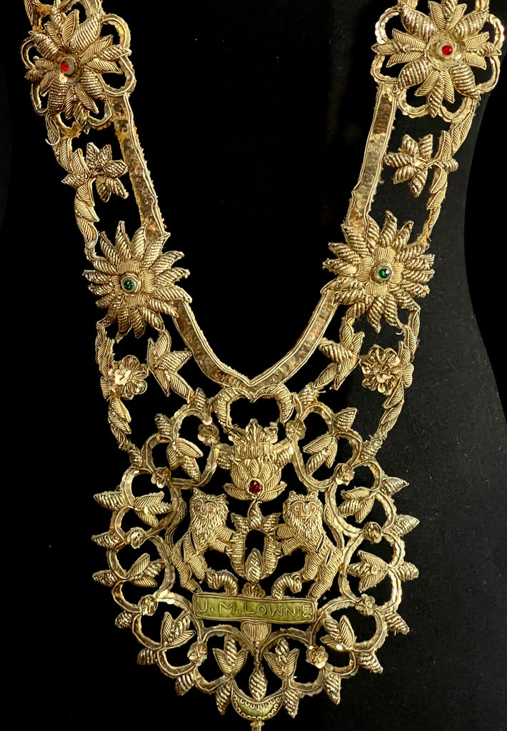 Antique Anglo India Zardozi Embroidered Heraldic Ceremonial Garland Necklace: C19th India