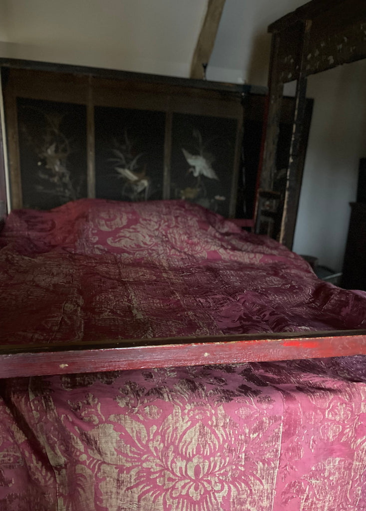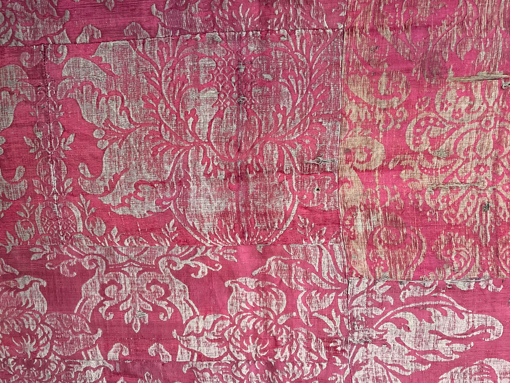 Dating from the 17th century a large size panel of Italianate crimson silk damask from Italy.